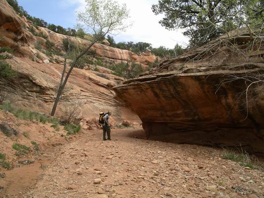 Inside Mule Canyon, just below the Flame Roof Ruins. Standing where I took this image, if you turn and look up 90 degrees to the left, the ruins are just up the slope. As you are hiking in, when you see this over hang from the other side, you'll know you are close. | ||||||||||||||||||||||||||||||
